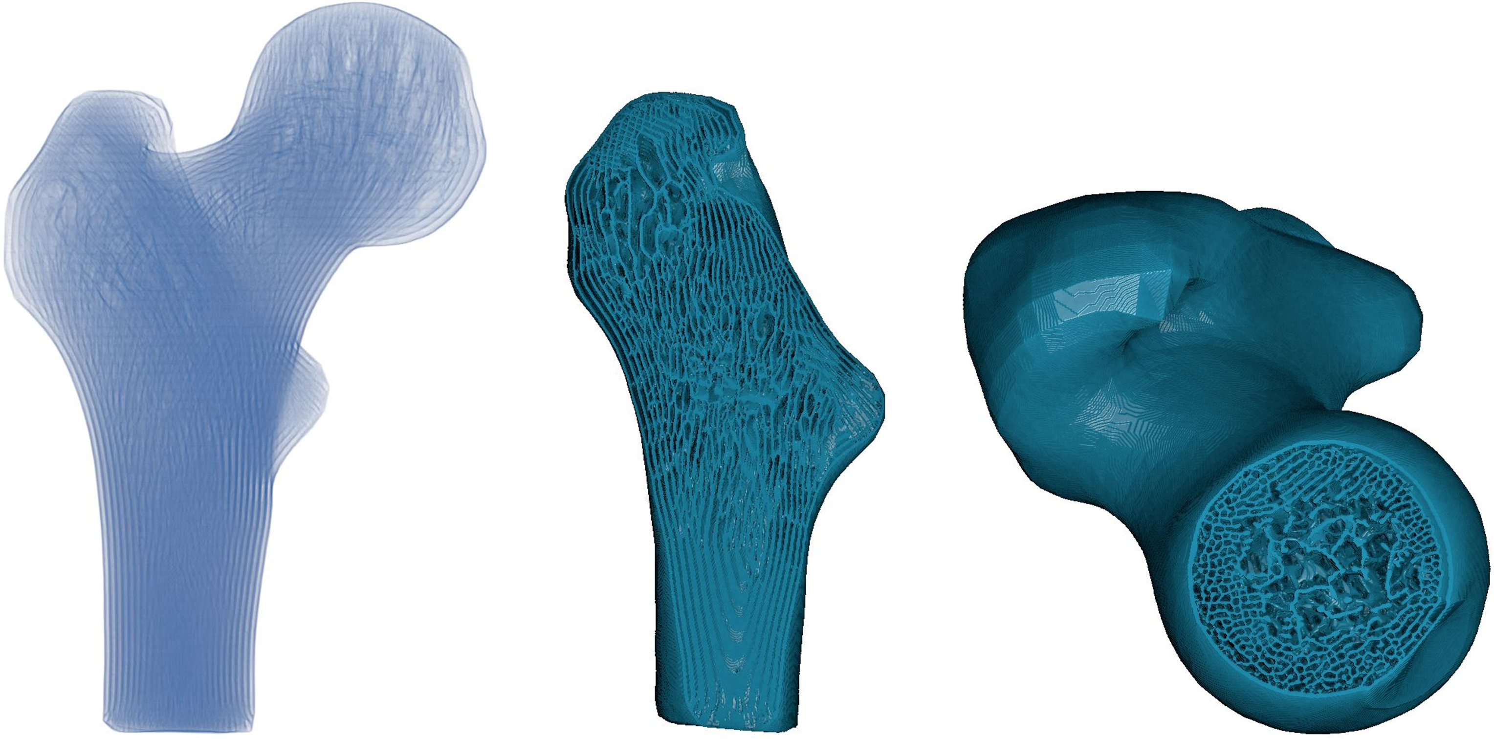 Context: Given a geometric model of a molar described in a triangular surface mesh, one can generate different types of infill patterns under the same material budget (e.g., 50%) and compare the stiffness measured by the compliance value (C).
